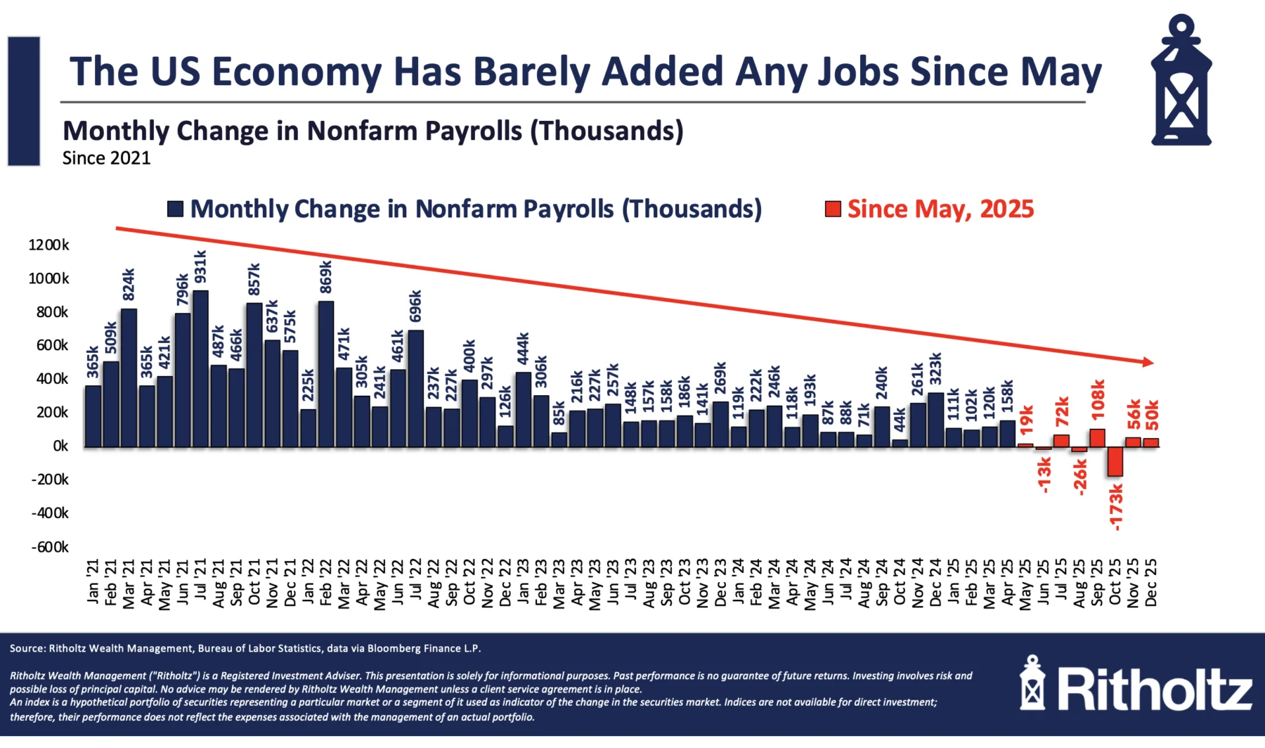 Then came April 2nd, 2025. We expect a substantial tax increase to cause some issues with hiring, but the haphazard, almost random way these were implemented was especially disruptive. We have not added any jobs since Liberation Day. Worse, the NY Times analysis found “Health care and social assistance accounted for virtually all private-sector job growth in 2025.”